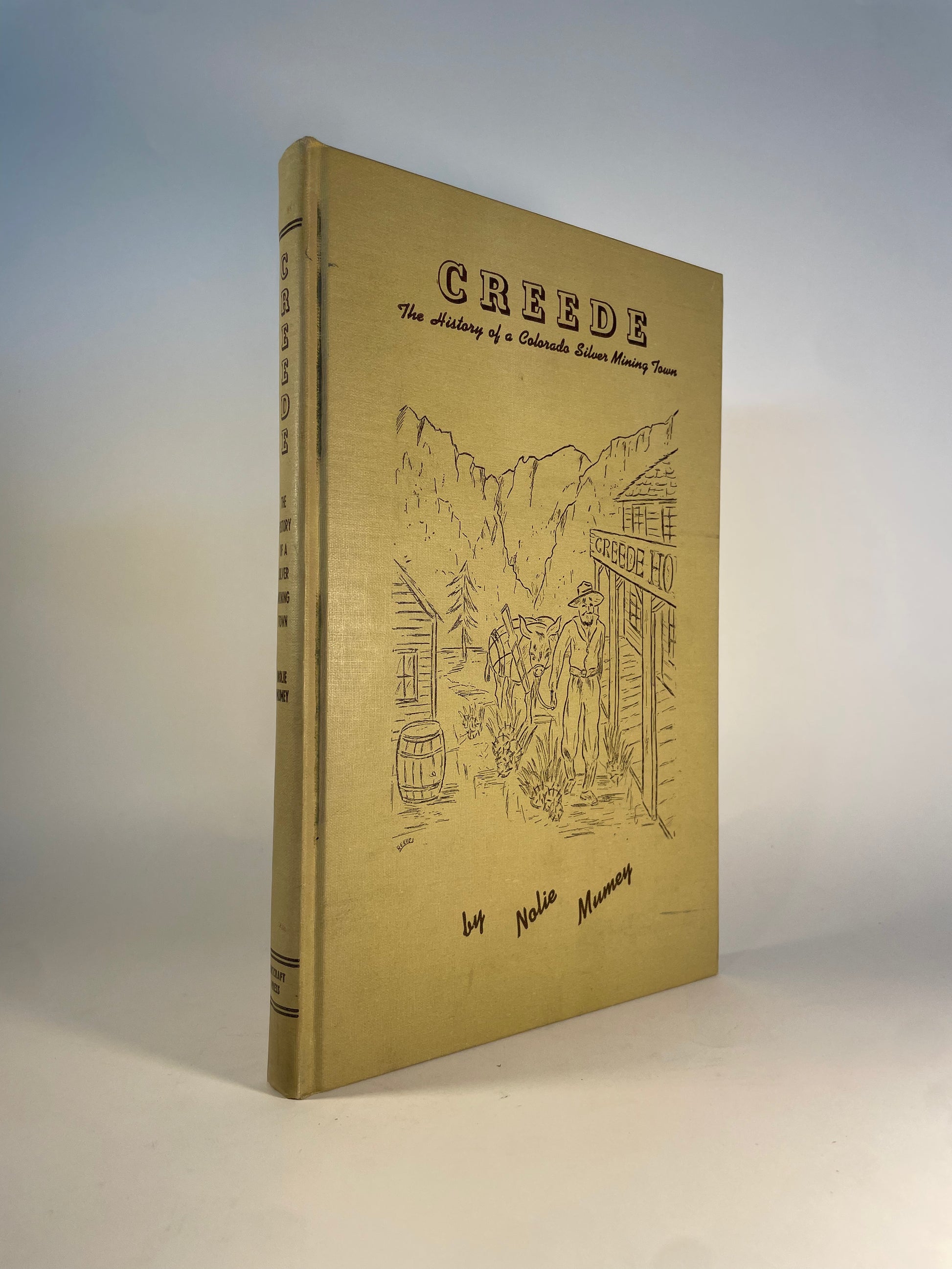 MUMEY, NOLIE. Creede: The History of a Colorado Silver Mining Town. With Illustrations and a Pictorial Map. Denver: Artcraft Press, 1949. 185pp. Illustrated. Original pictorial beige cloth boards. Title to spine. Slight wear to extremities. Untrimmed. Bookplate of William Tracy Hover, noted Colorado collector. Very good or better.