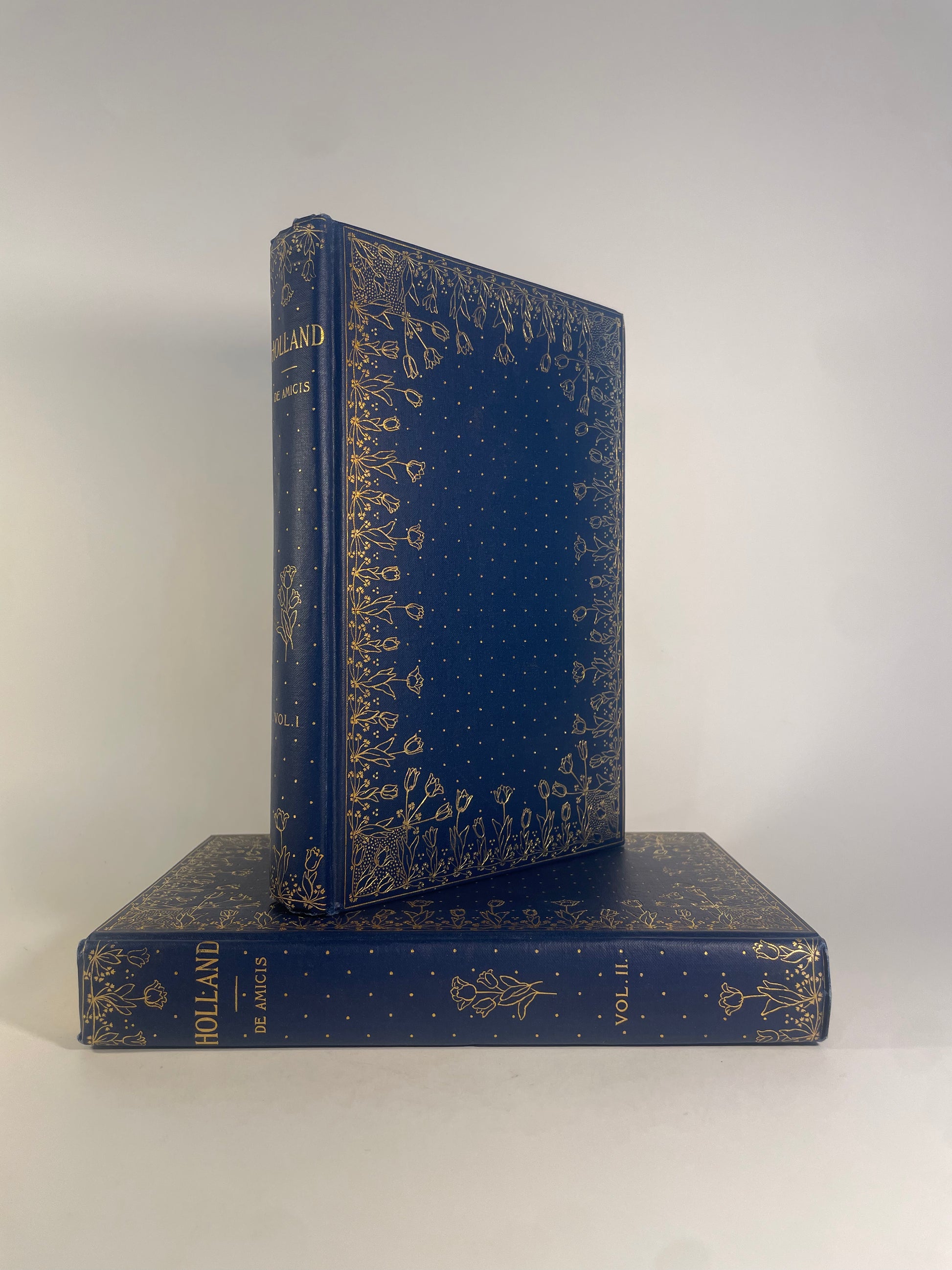 DeAMICIS, EDMONDO. Holland. Philadelphia: Porter & Coates, 1894. 2 Volumes. Frontis. Illustrated. Original dark blue cloth boards with elaborate gilt floral decoration. Gilt detail to spine. T.e.g. Corners lightly bumped. Head and foot of spine with slight wear. Untrimmed. Near fine.