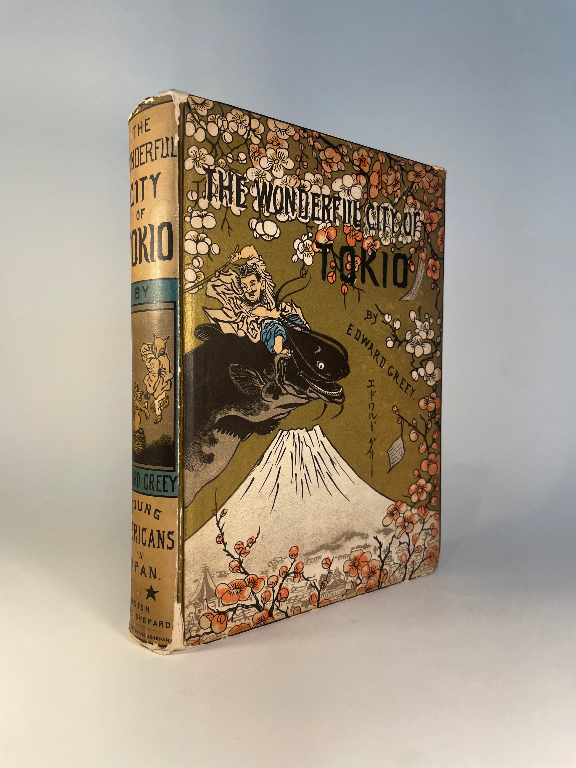 GREEY, EDWARD. The Wonderful City of Tokio or Further Adventures of the Jewett Family and their Friend Oto Nambo. Boston: Lee & Shepard, 1883. 301pp. Frontis. Illustrated. Original colorfully illustrated boards. Title to spine and front board. Minor wear to head and foot of spine and edges of boards. Overall very good.